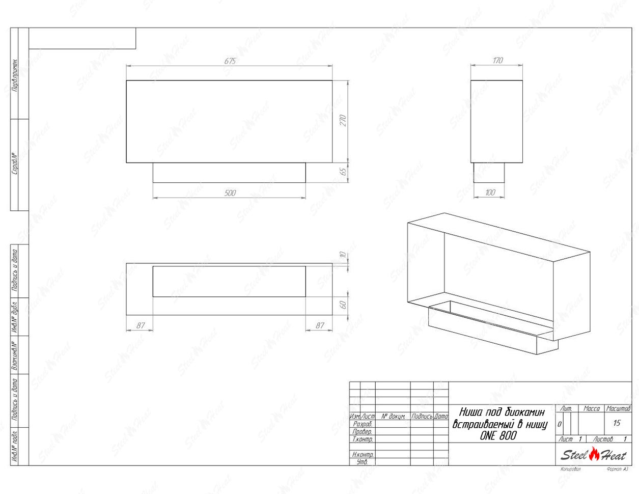 Встраиваемый Биокамин SteelHeat ONE-V 800 предназначен для встраивания в глухие ниши из гипсокартона, кирпича, пеноблоков, бетона.