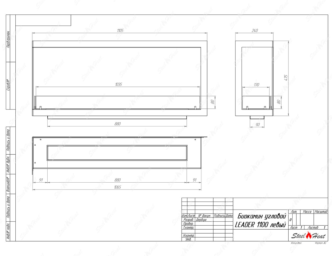 Встраиваемый Биокамин угловой SteelHeat Leader 1100 левый предназначен для встраивания в глухие ниши из гипсокартона, кирпича, пеноблоков, бетона.
