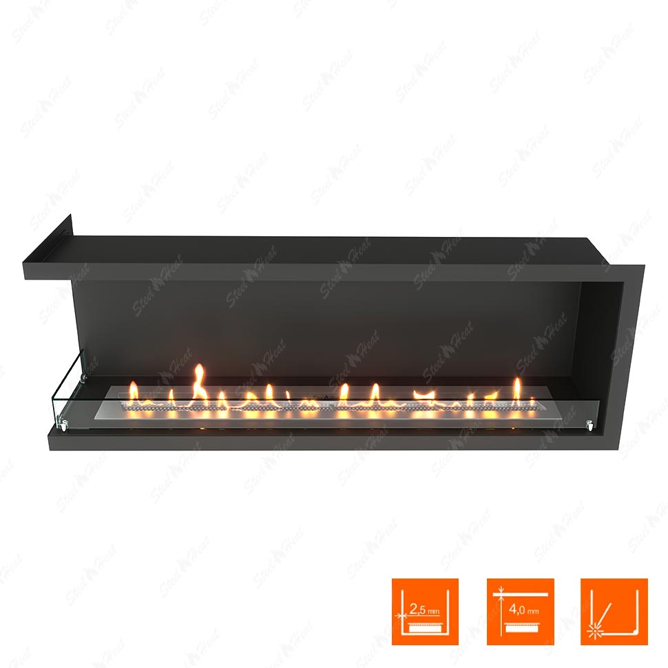 Встраиваемый Биокамин угловой SteelHeat Leader 1300 левый предназначен для встраивания в глухие ниши из гипсокартона, кирпича, пеноблоков, бетона.