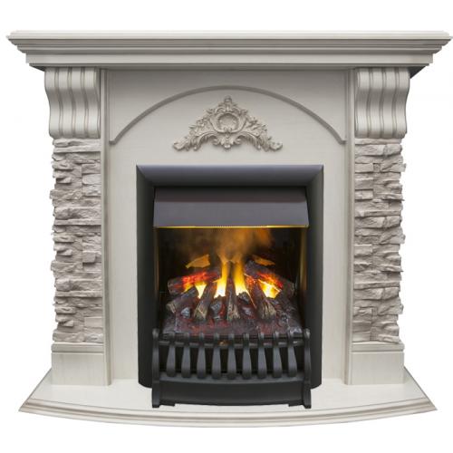 Каминокомплект «Athena GR» с паровым очагом «3D Oregan» представлен компанией Real Flame. Этот вариант является новинкой в серии классических каминов производителя, а его отличительной особенностью является серый оттенок камня. Он ярче подчеркивает цвет и текстуру белого дуба, в котором выполнена основа, и усиливает классический вид изделия. Эта модель выполнена в пристенном варианте и отличается небольшой шириной. Поэтому камин подойдет для оформления помещений малой площади, в которых он не будет загромождать пространство, в том числе и визуально.